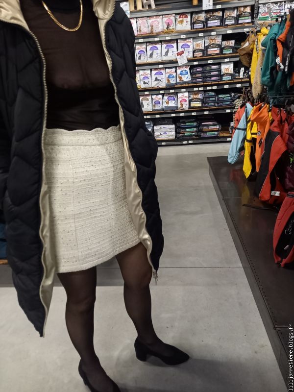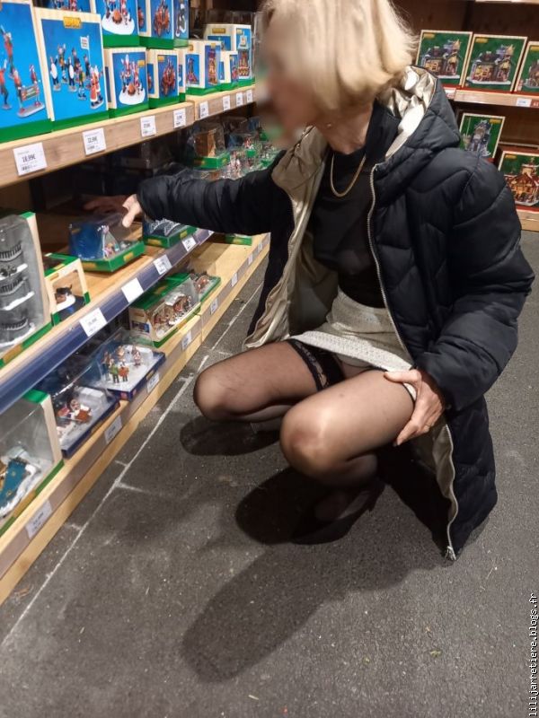 ça donne envie de faire les magasins !!! tres jolie vue sur les bas et le minou lisse, bravo!